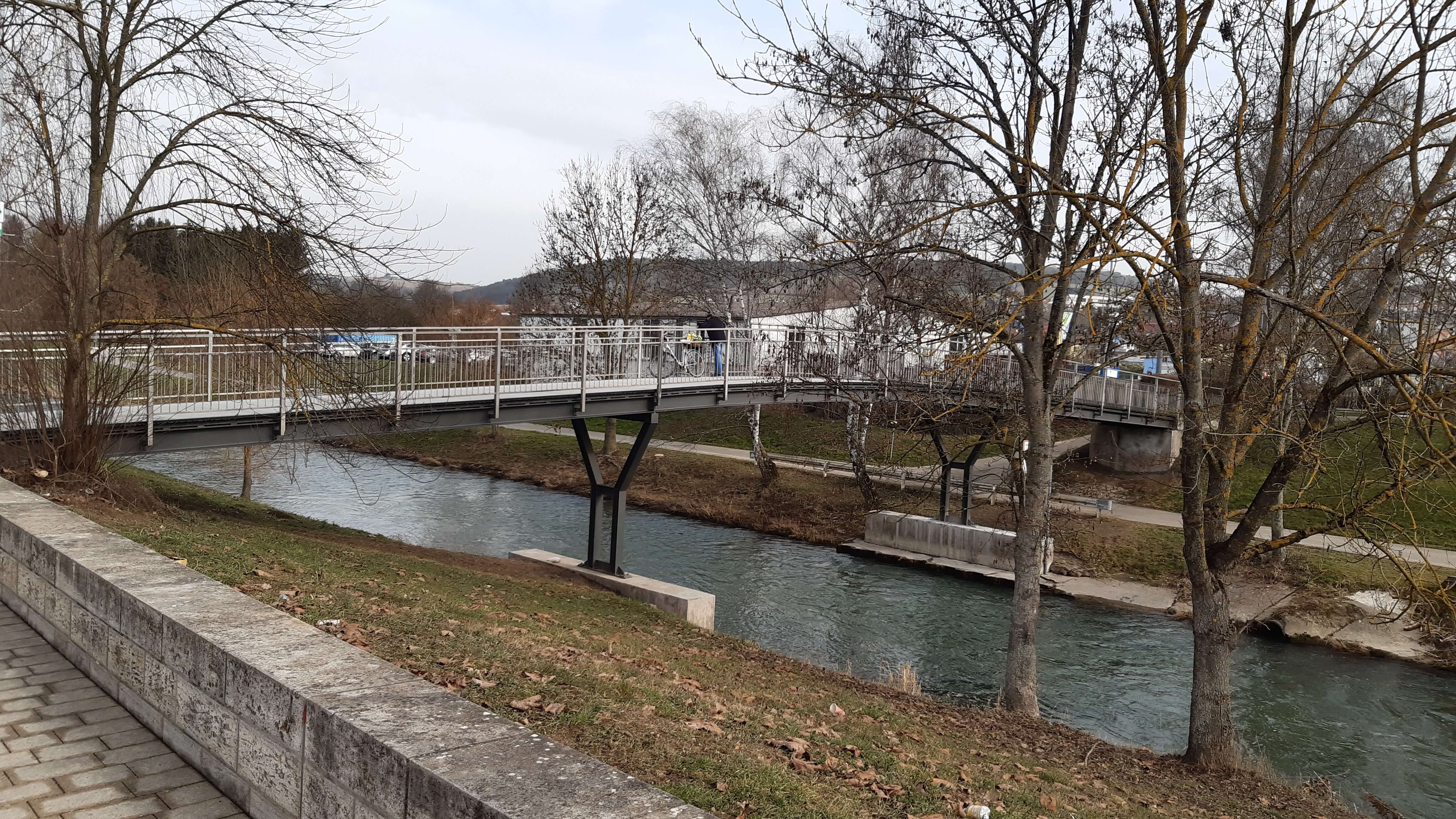 The renovation of the Bonanza Steg pedestrian bridge in Tauberbischofsheim, Germany, which is also used by cyclists, had become a matter of urgency. Indeed, owing to age and weather effects, the entire wooden structure mounted on the steel bridge was rotting and making the crossing unsafe. The Municipality asked krafton® to apply glass fibre-reinforced plastic to the structure between the existing steel girders. We then produced and assembled 120 m2 of 256.40 FRP Bridge Decking Planks on the existing structure of this cycle and pedestrian bridge. In this way, we contributed to a safe crossing for pedestrians and cyclists for a minimum service life of 50 years.